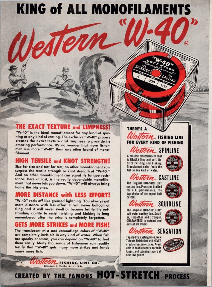 Western Fishing Lines is the original fishing brand developed by Western Filament Inc. The brand became irrelevant in the 1970’s as the company explored other industries and eventually developed a new fishing line brand